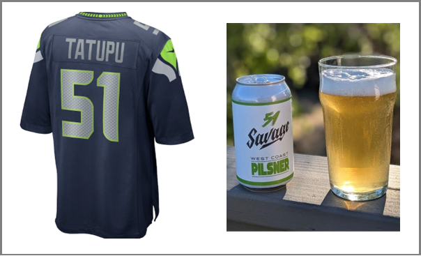 Take home this amazing prize of (4) autographed Lofa Tatupu Seahawks Jerseys and four 1/2 racks of 51 Savage West Coast Pilsner - beer collaboration between Seahawk Great, Lofa Tatupu and Savage Brewing!
