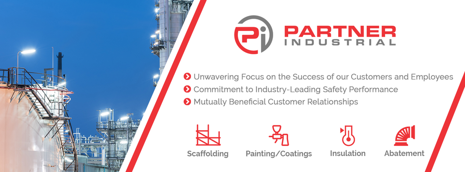 Partner Industrial is a leading provider of maintenance and facility services to a broad range of processing and industrial markets, including chemical processing, pipeline and terminals, refining, pulp and paper, distribution and logistics, food and beverage, and power generation & utilities. Offering a full range of services including scaffolding, field and shop coatings, insulation, fire proofing, transportation, and operations support, among many others.