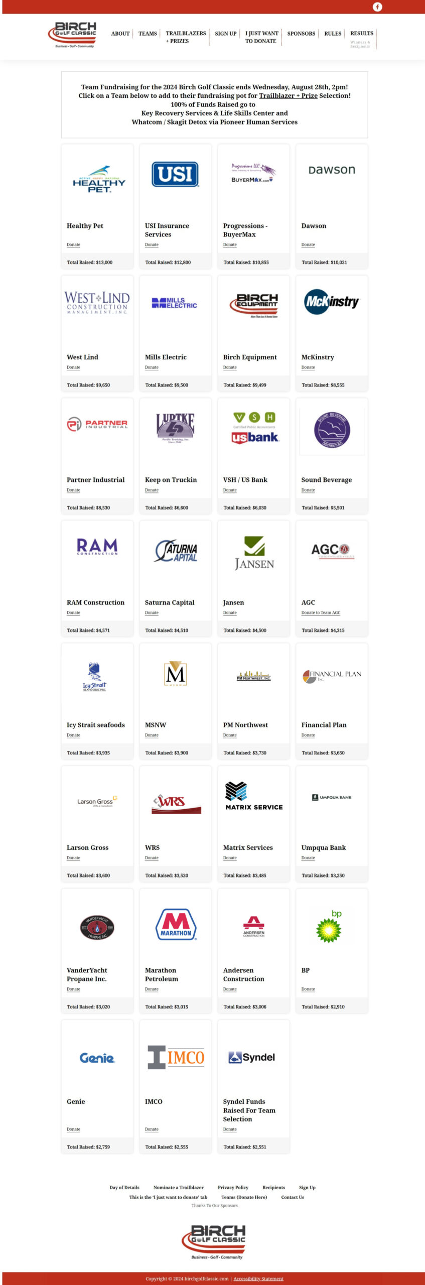 Team Fundraising results as of 2pm at 8-28-24 are shown in the screenshot on this page.